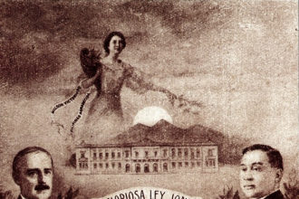 Alejandro Lelo de Larrea Columna Mientras caminan con pequeñas banderas de México sobre la Plaza…